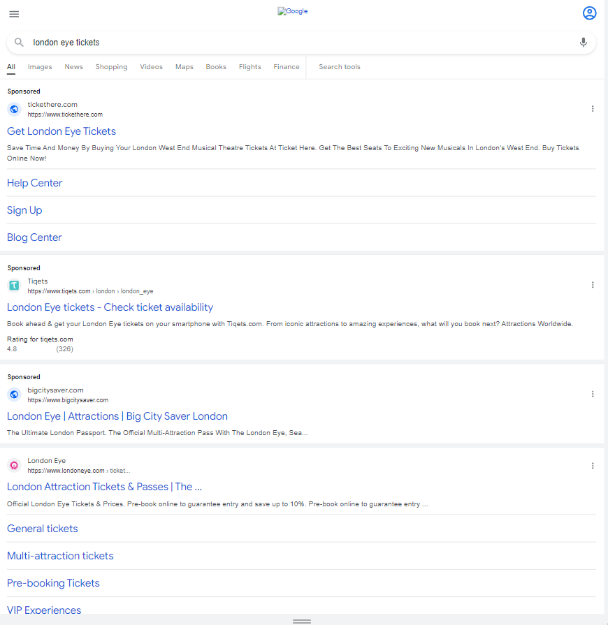 That means The London Eye would need to pay monthly between €33,110 to €159,530 for showing its ads on the top of Google’s search results, just for its brand name.